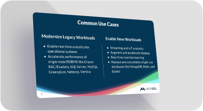 Common Use Cases Modernize Legacy Workloads Enable New Workloads ● Enable real-time analytics for ● Streaming and IoT analytics operational systems ● Augment and accelerate Hadoop ● Accelerate performance of ● Real-time machine learning single-node RDBMS like Oracle ● Replace and consolidate single-use RAC/Exadata, SQL Server, MySQL, databases like MongoDB, Redis, and Greenplum, Netezza, Vertica Elastic 9
