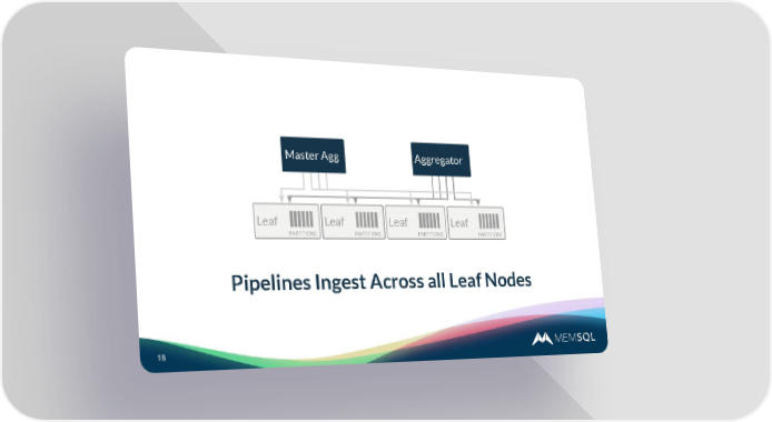 Interactive Introduction To MemSQL Page 17 Page 19MMaasstteerr Agg AAggggregator Aggregator Aggregator LLeeaaff LLeeaaff LLeeaaff LLeeaaff PARTITIONS PARTITIONS PARTITIONS PARTITIONS Pipelines Ingest Across all Leaf Nodes 18